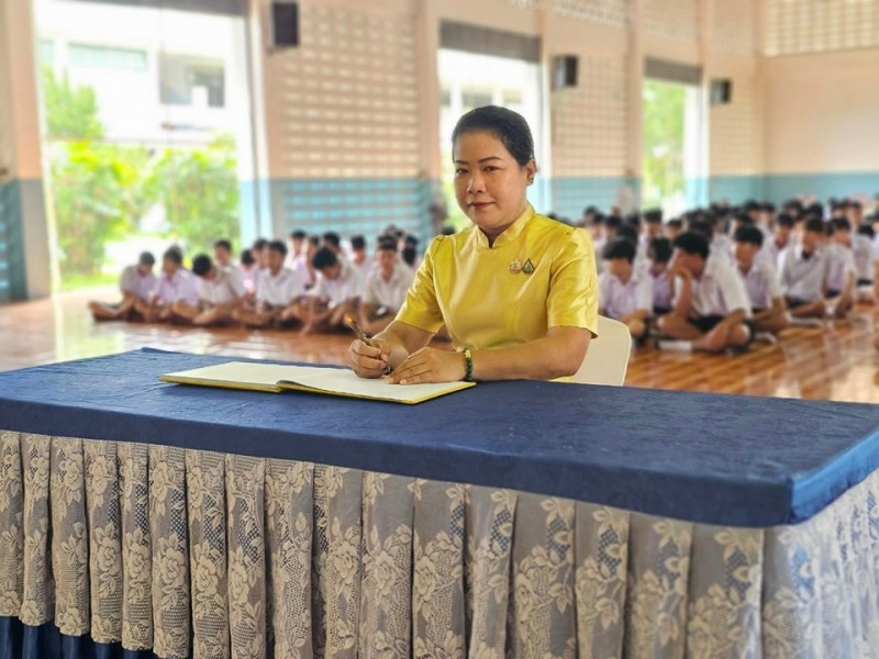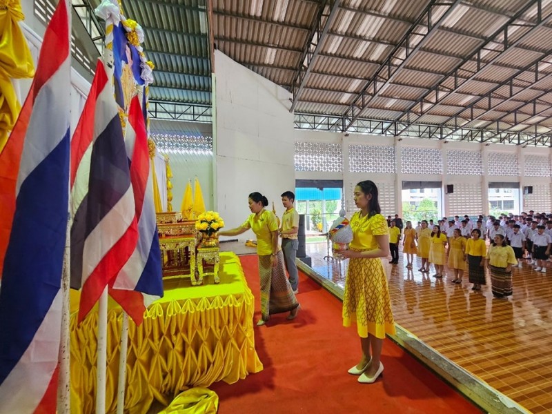 | นางอโนชา สวรรคโลก ผู้อำนวยการโรงเรียนวังไทรวิทยาคม พร้อมด้วยคณะครู บุคลากร และนักเรียน ร่วมกิจกรรมวันเฉลิมพระชนมพรรษา สมเด็จพระเจ้าอยู่หัวมหาวชิราลงกรณ บดิทรเทพยวรางกูร โดยมีพิธีถวายพระพรชัยมงคล การถวายสัตย์ปฏิญาณ การลงนามถวายพระพร และร่วมนั่งสมาธิเจริญจิตตภาวนา เพื่อถวายเป็นพระราชกุศลเนื่องในโอกาสวันเฉลิมพระชนมพรรษา พระบาทสมเด็จพระเจ้าอยู่หัว วันที่ 28 กรกฎาคม 2567 ณ หอประชุมไทรบงกช โรงเรียนวังไทรวิทยาคม |